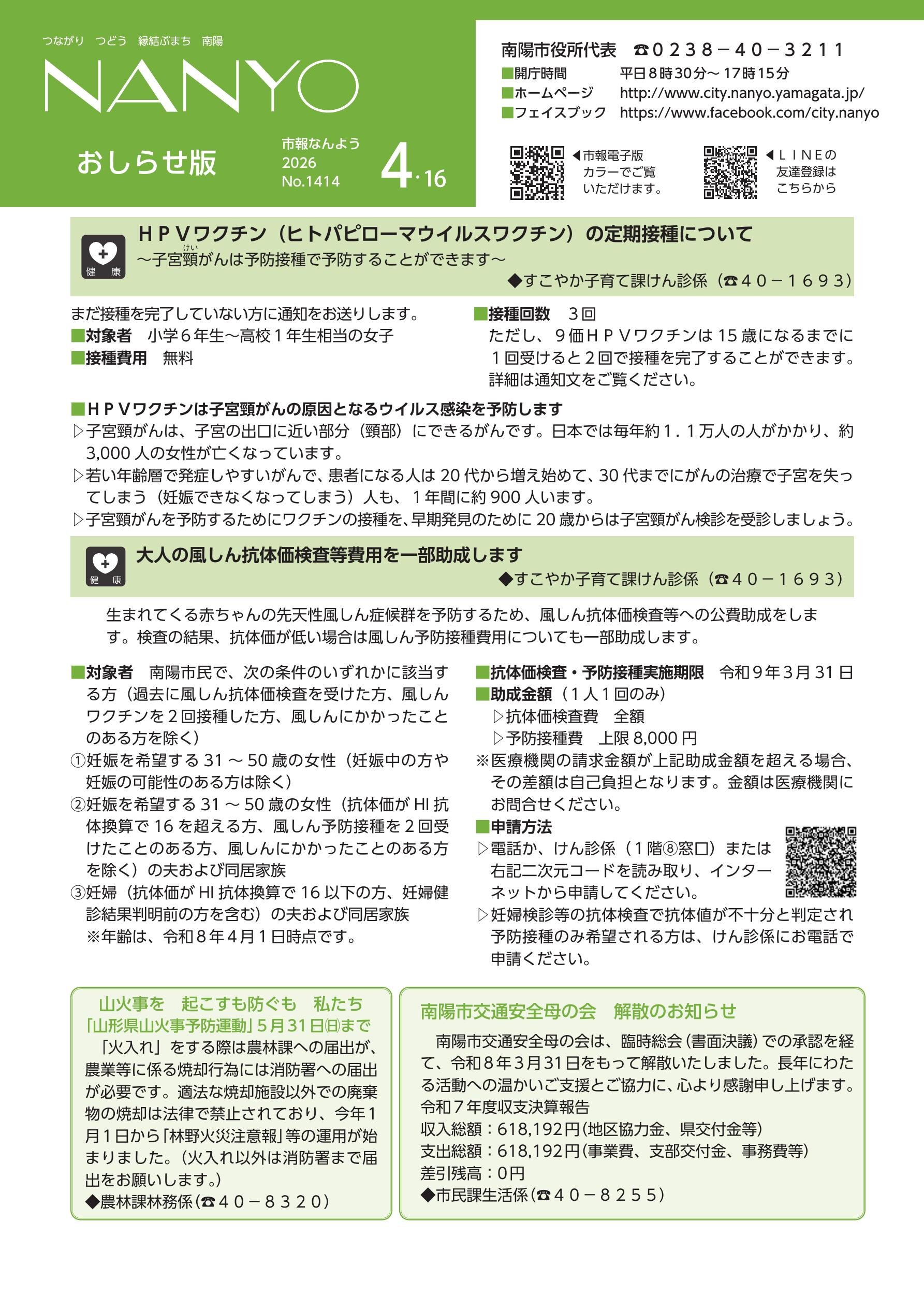 市報なんよう 2026年4月15日号