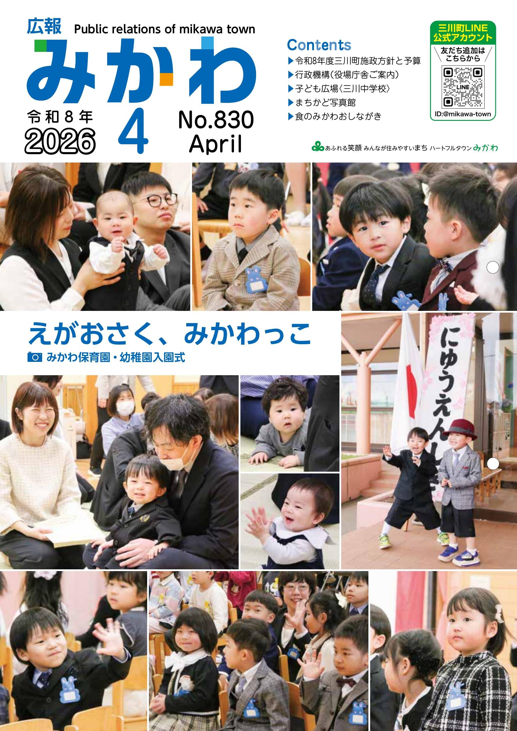 ◎令和8年度三川町施政方針と予算 ◎行政機構(役場庁舎ご案内) ◎子ども広場〈三川中学校〉 ◎まちかど写真館 ◎食のみかわおしなが ...