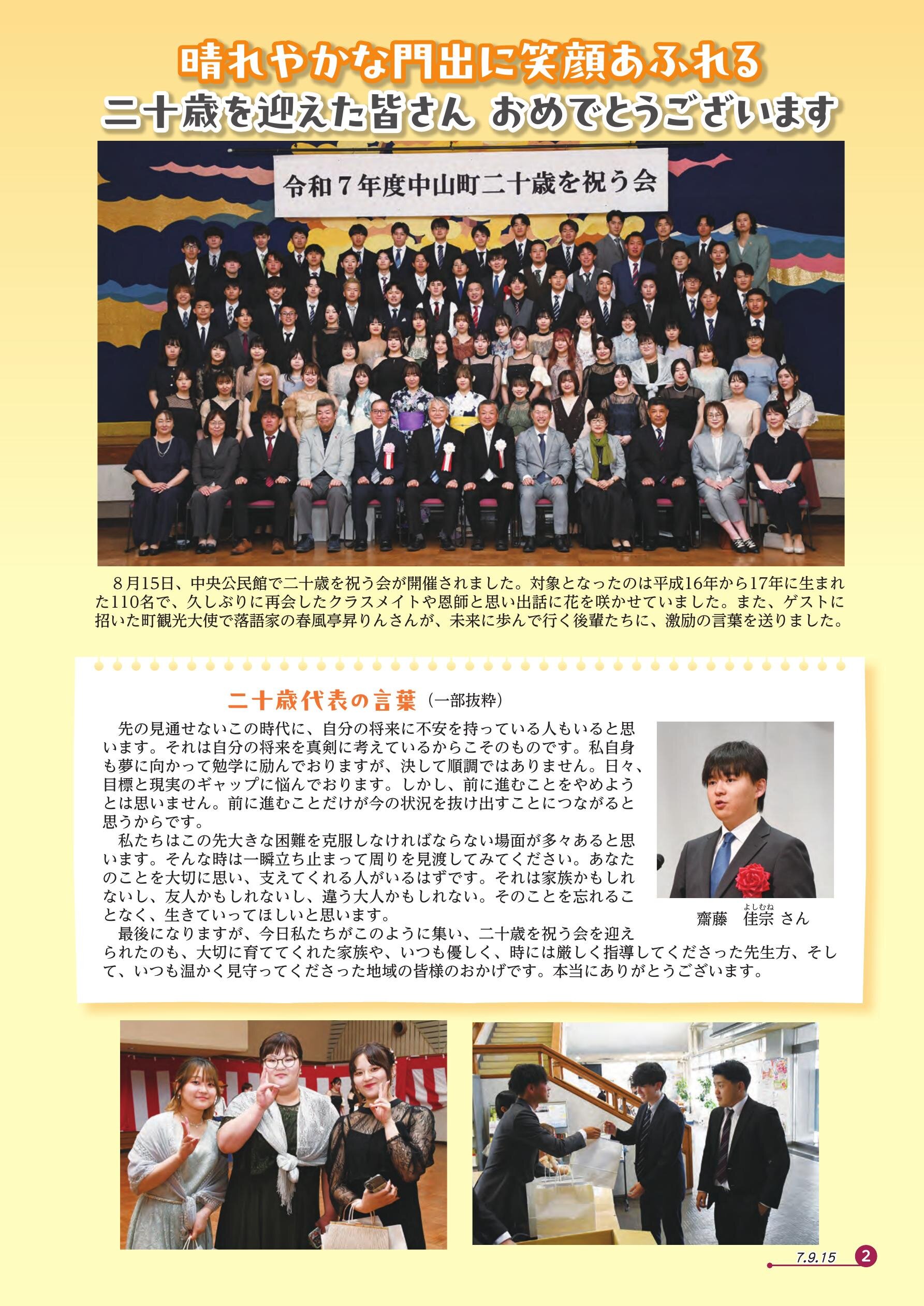 二十歳を迎えた皆さん おめでとうございます