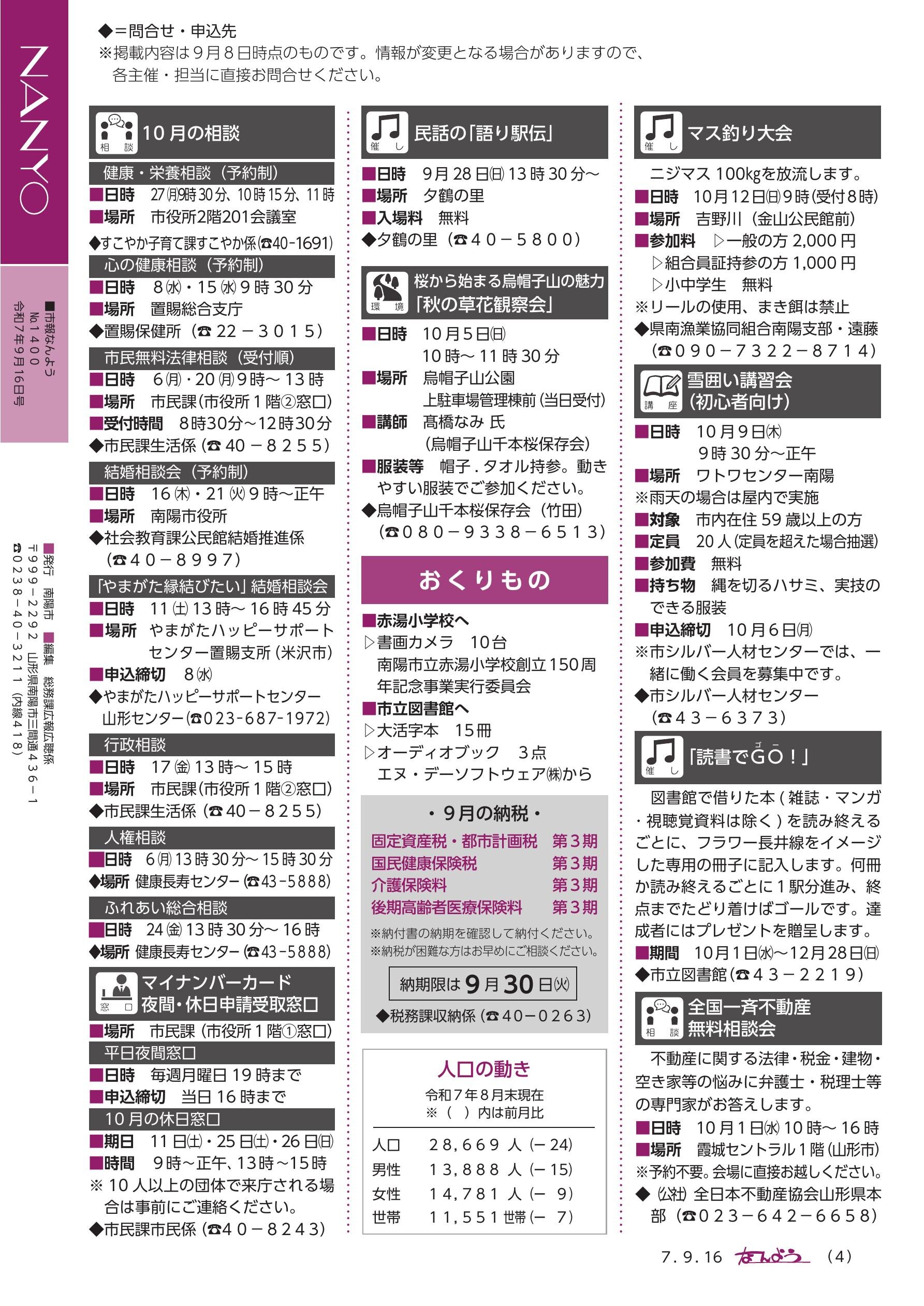 南陽市のブック もっと見る ≫ 市報なんよう 2020年11月1日号 市報なんよう 2023年4月1日号 市報なんよう 2021年5月1日号 市報なんよう お知らせ版 2020年3月16日号 市報なんよう 2024年4月1日号