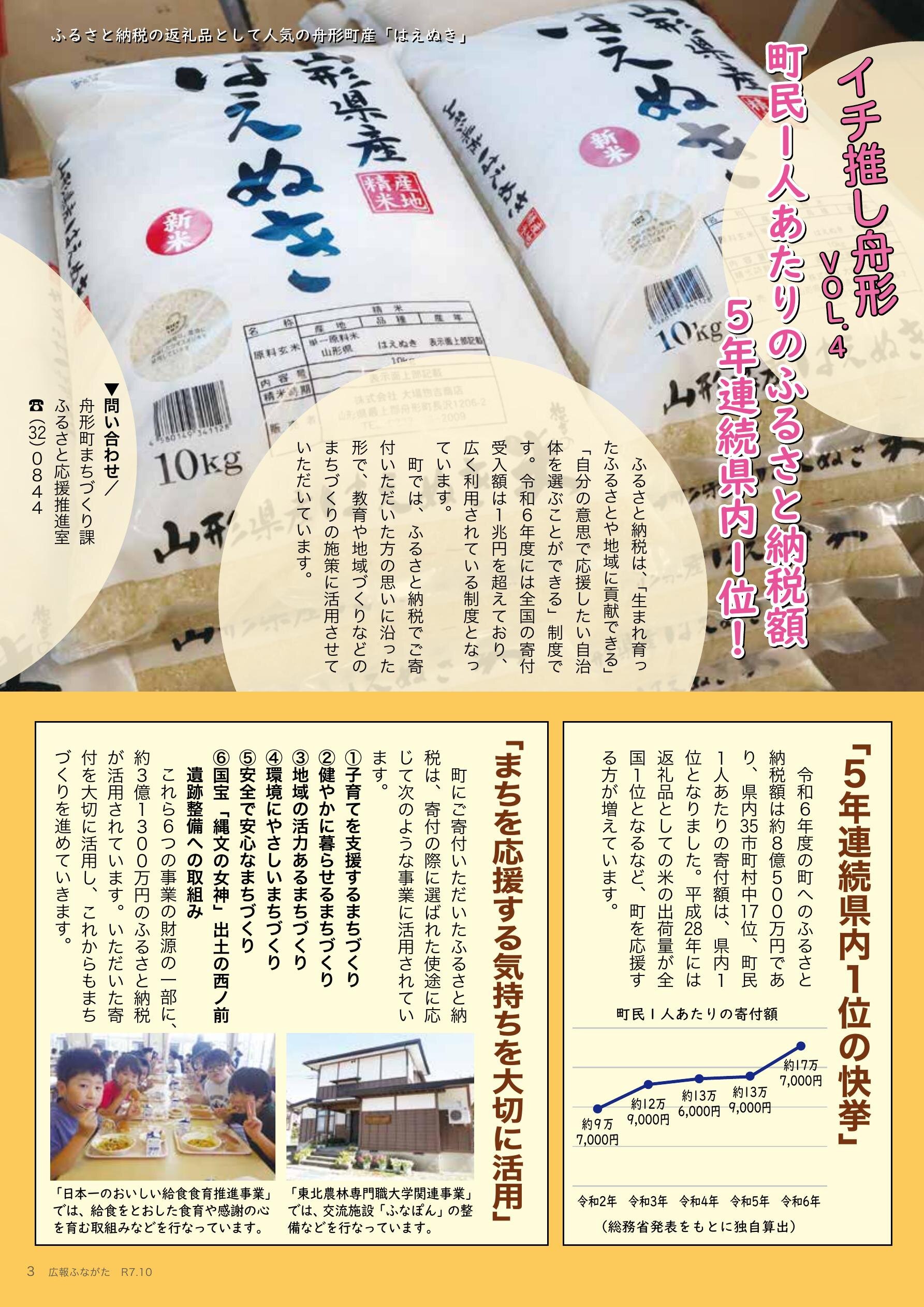 - ◎イチ推し舟形 町民1人あたりのふるさと納税額5年連続県内1位!