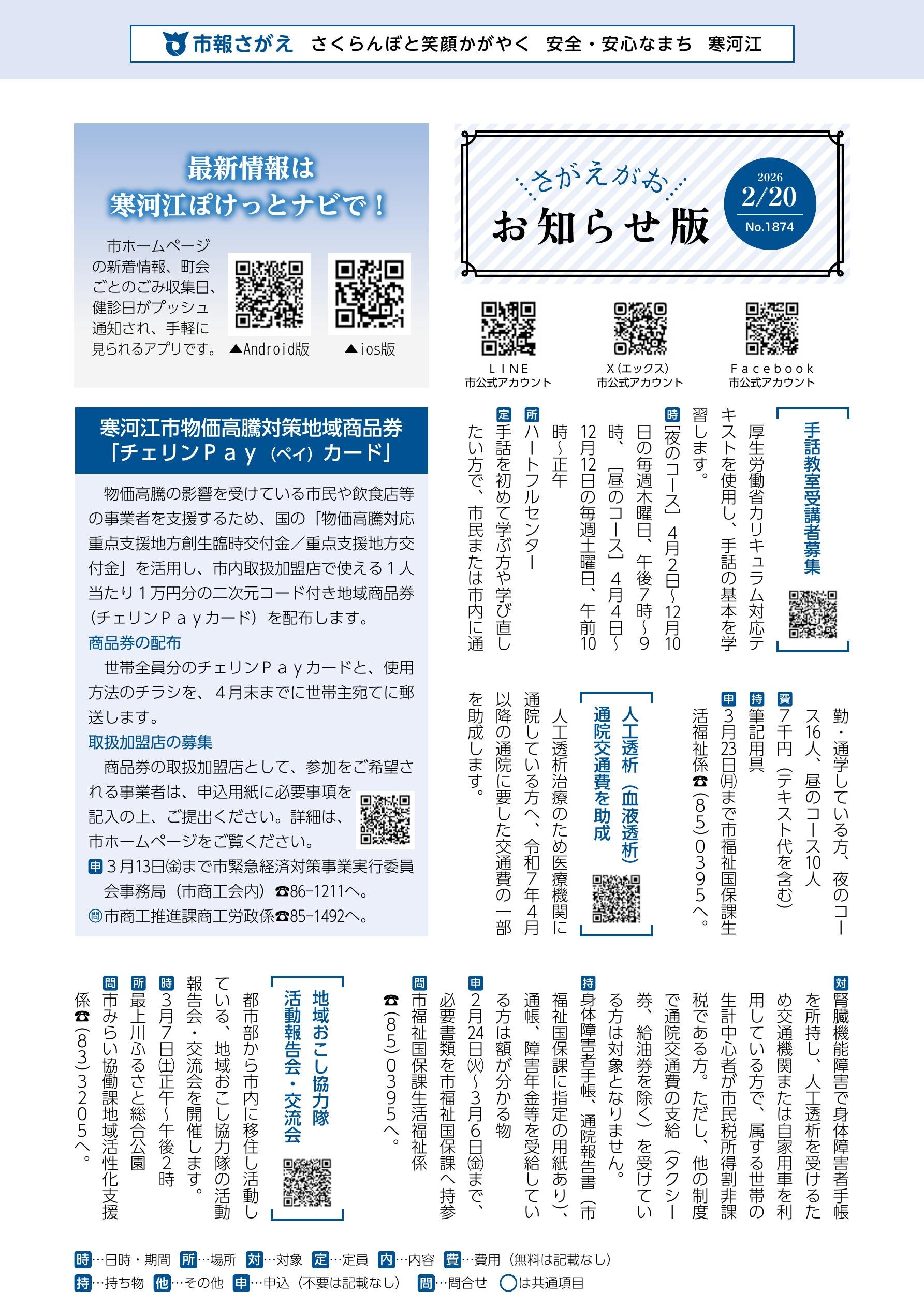 寒河江市のブック もっと見る ≫ 市報さがえ 2025年10月5日号 市報さがえ 2025年10月20日号 市報さがえ 2025年9月20日号 市報さがえ 2025年12月20日号 市報さがえ 2026年2月20日号