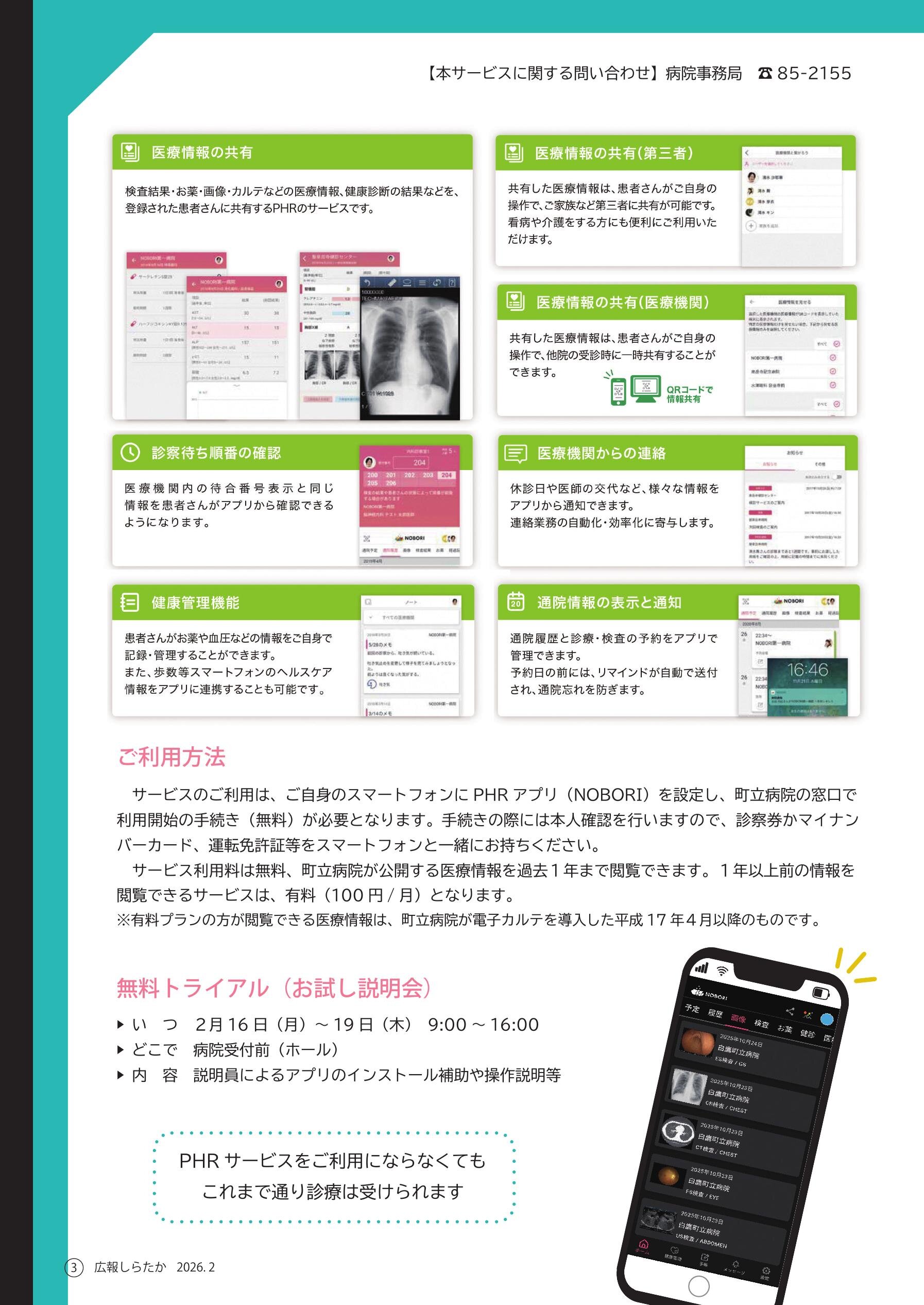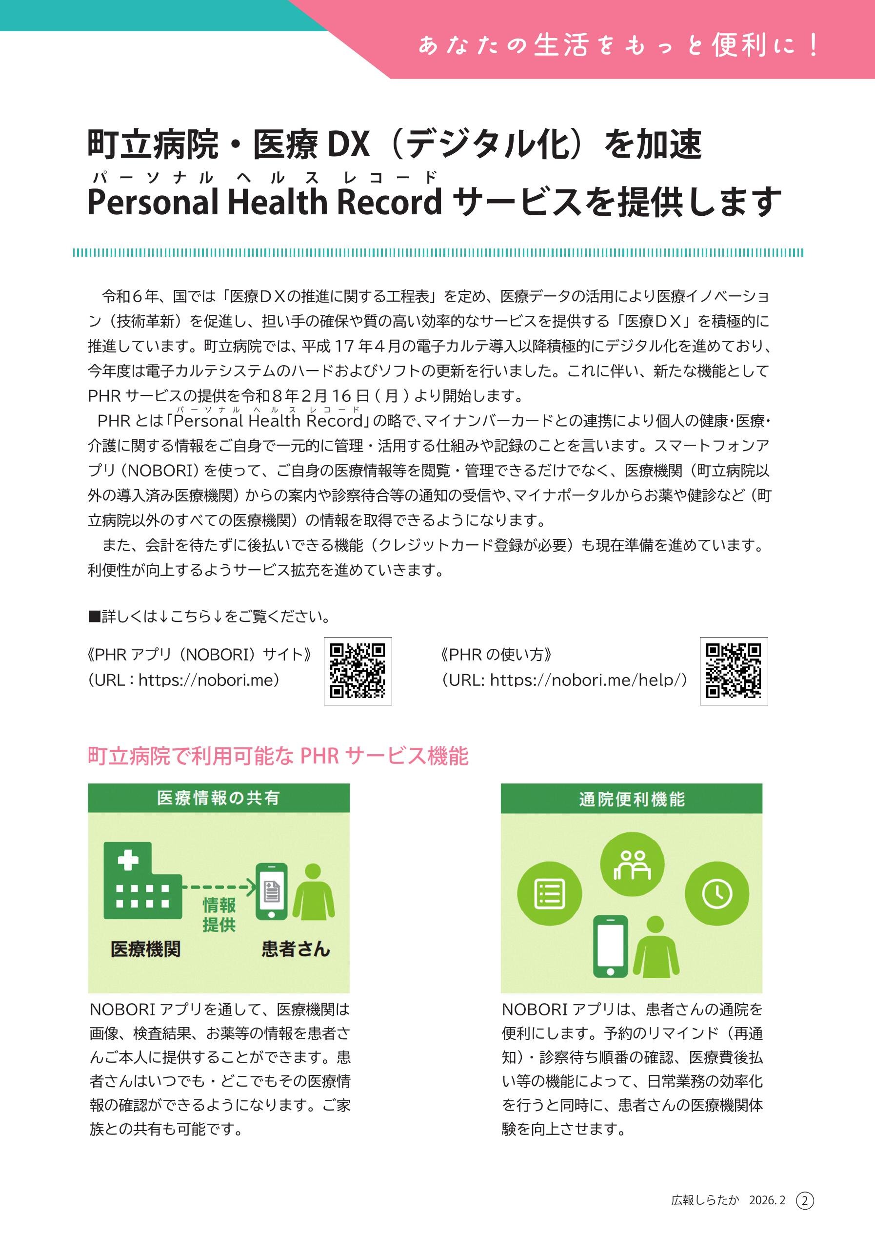 - ◎町立病院PHRサービスの開始について