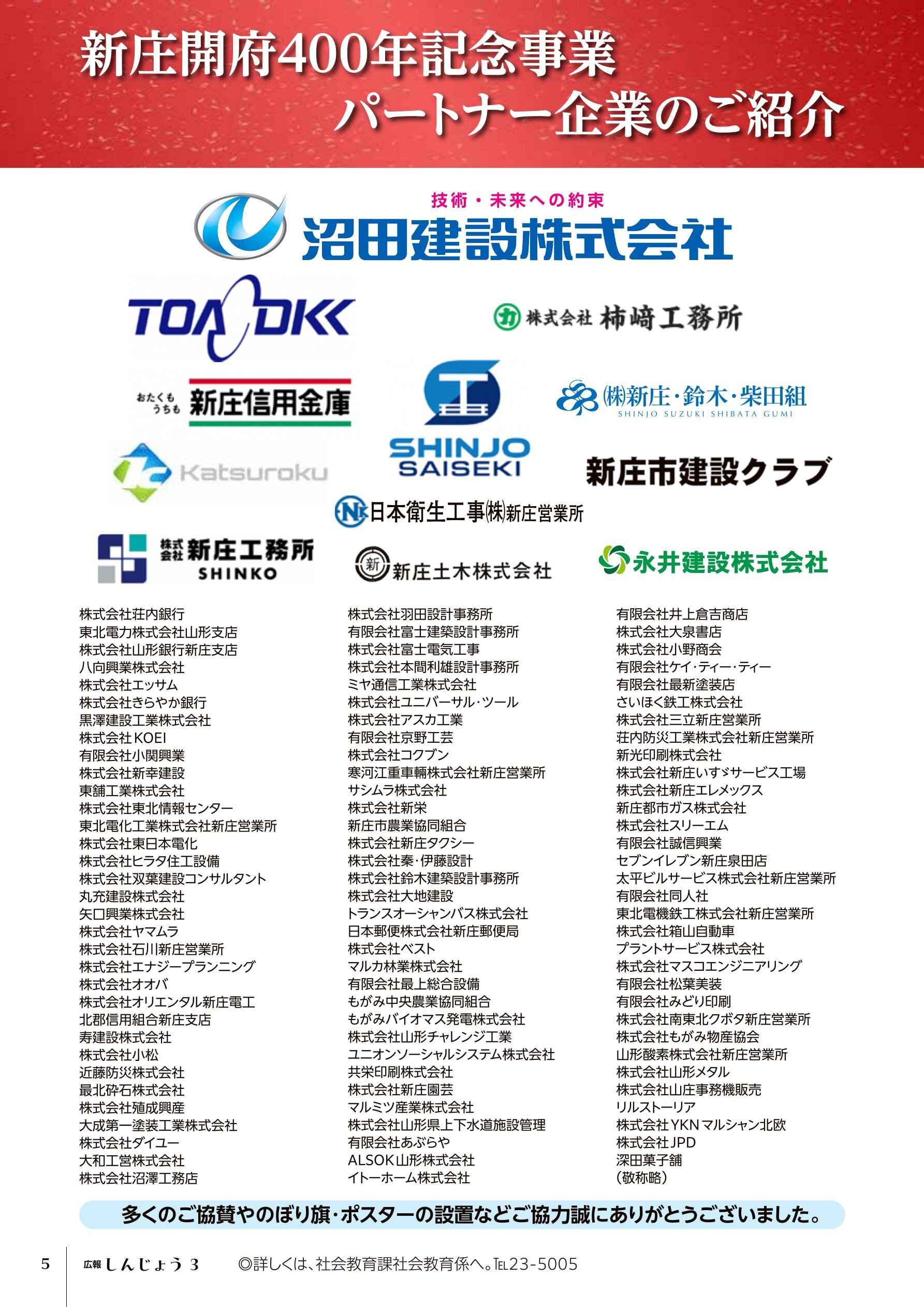 - ◎新庄開府400年記念事業パートナー企業の紹介
