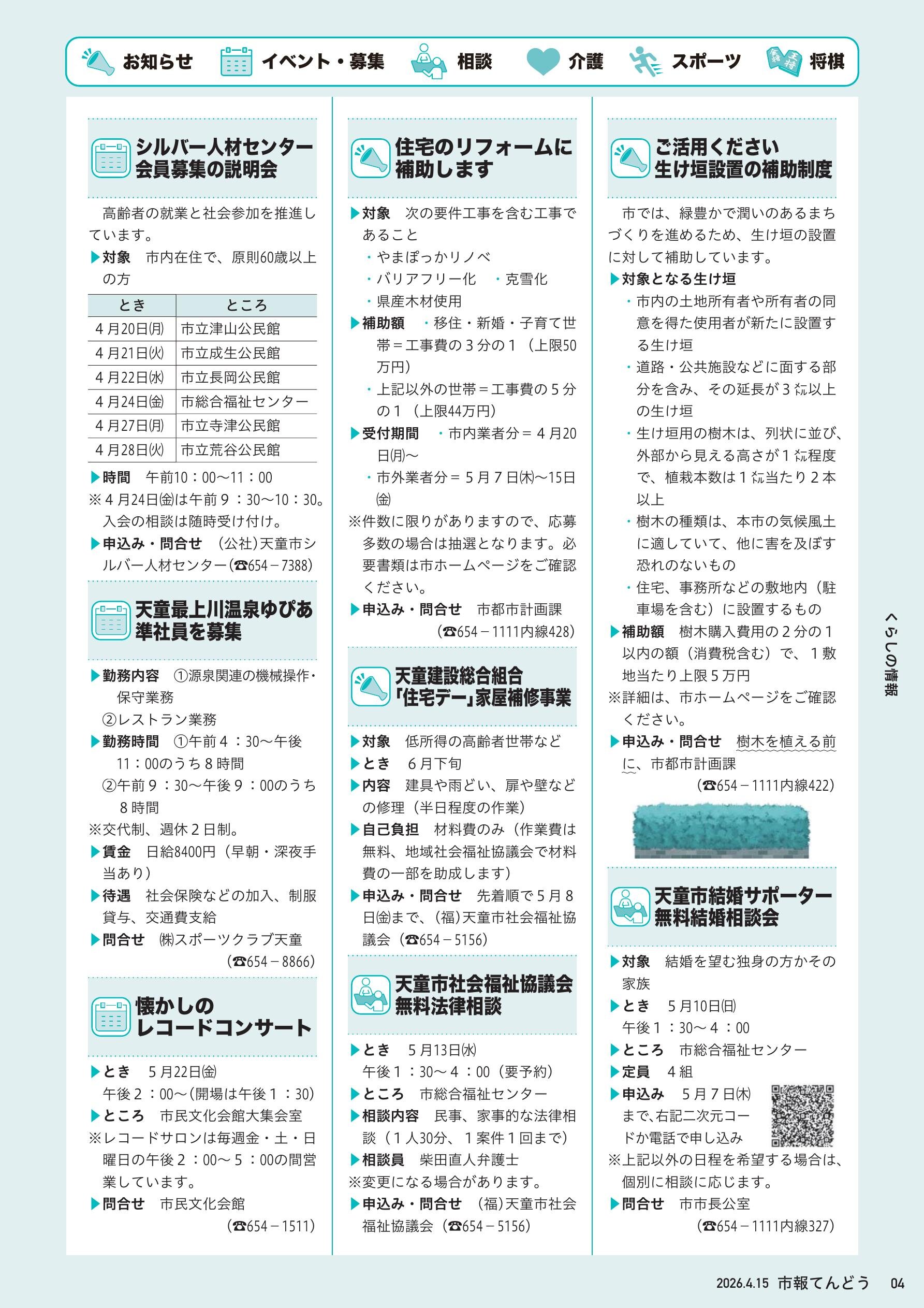 天童市のブック もっと見る ≫ 市報てんどう 2024年6月15日号 市報てんどう 2016年12月1日号 市報てんどう 2024年9月1日号 市報てんどう 2020年3月1日号 市報てんどう 2024年8月15日号